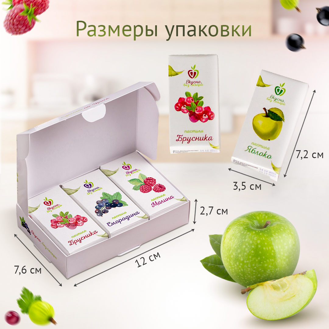 Пастила без сахара Вкусно, без сахара! Ягодное ассорти, подарочный набор, 90 г, 6 шт в уп. интересное: