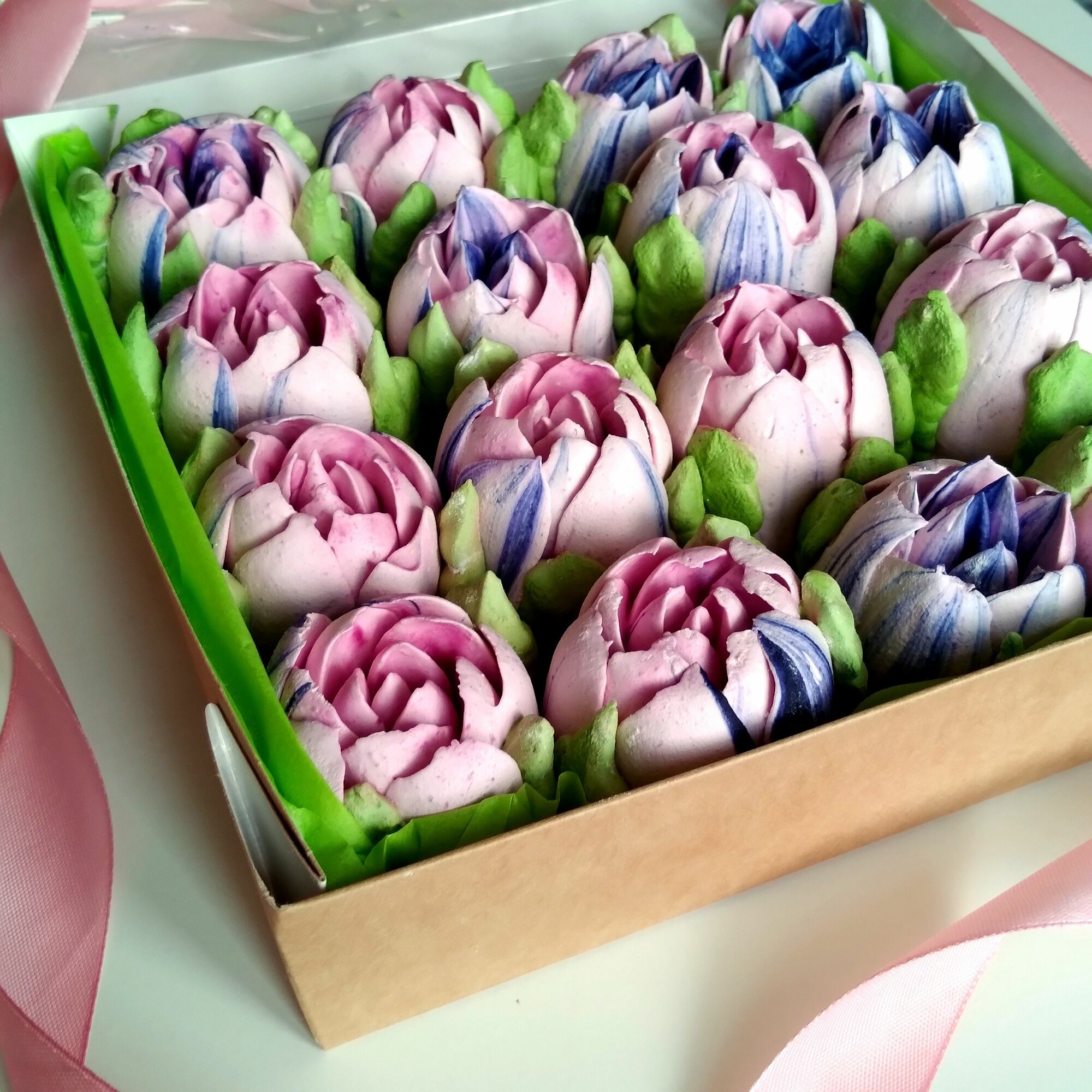 Зефирные тюльпаны со вкусом клубника+мята ручная работа подарочная упаковка натуральный состав