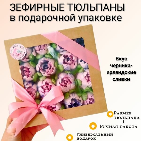 СохранитьЗефирные тюльпаны со вкусом черника со сливками ручная работа подарочная упаковка натуральный состав интересное:
