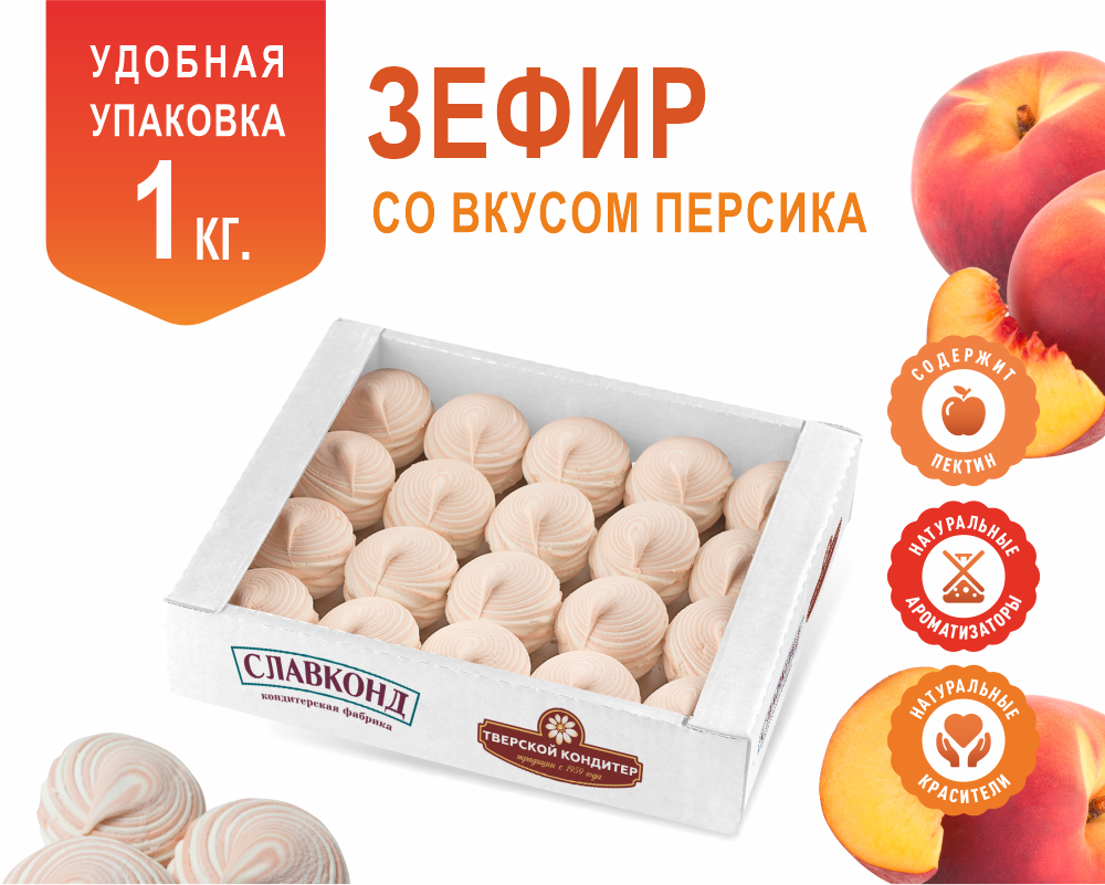 Зефир натуральный "Зефс" со вкусом персика 1 кг интересное: