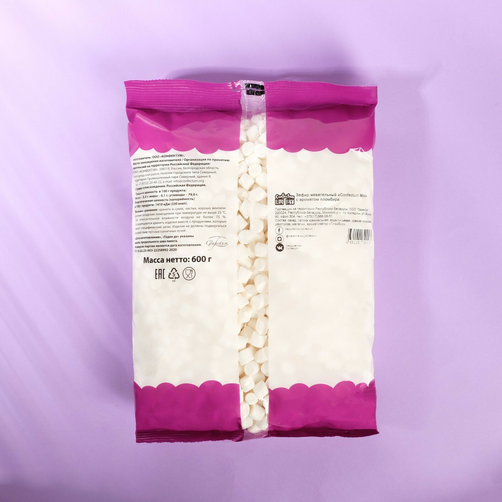 Маршмеллоу Confectum Mini с ароматом пломбира, 600 гр. интересное: