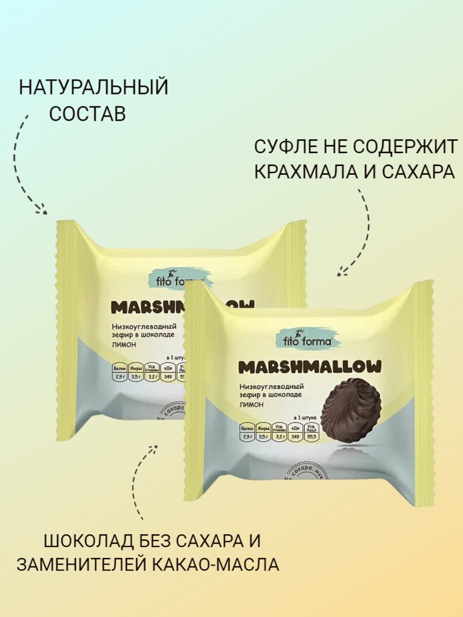 Купить Низкоуглеводный зефир в шоколаде, без сахара, Лимон, Fito Formа, 40 гр, (2 шт. в наборе)