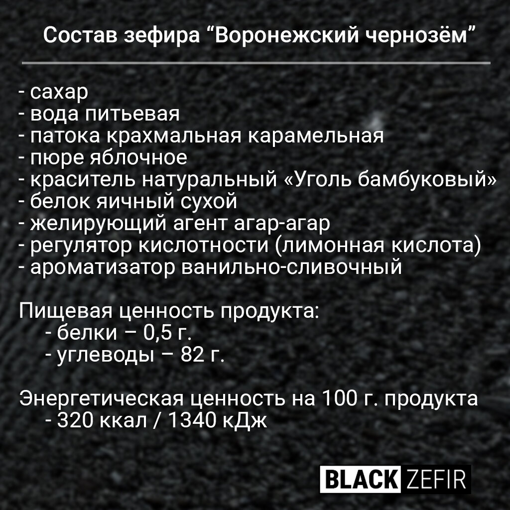 Зефир "Воронежский чернозём" (Black Zefir) чёрного цвета, 500 гр., 1 коробка интересное: