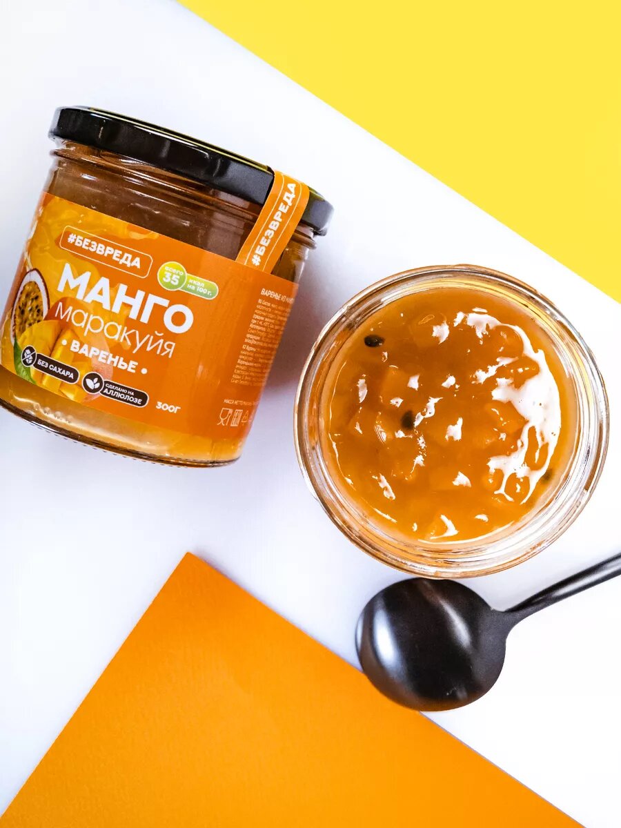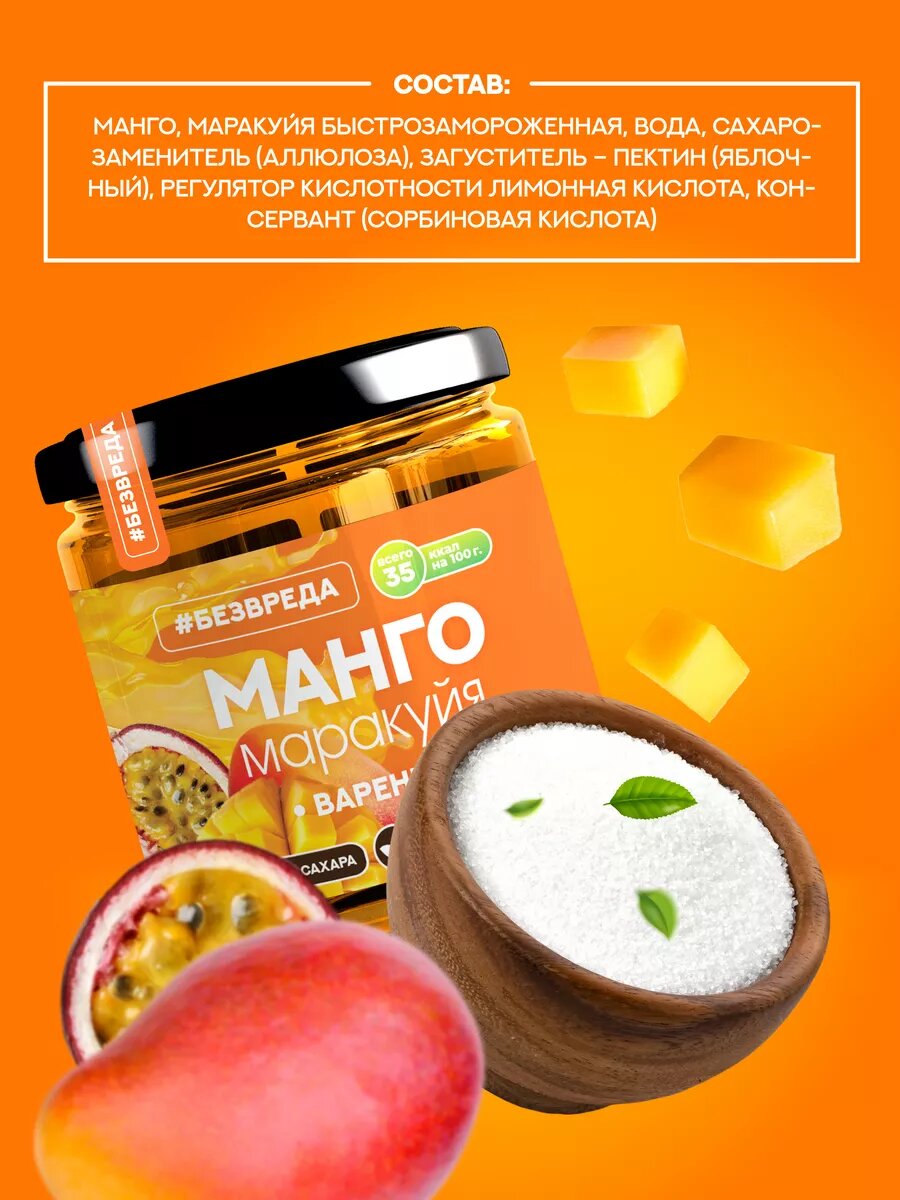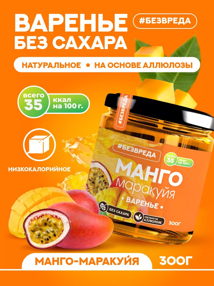 Варенье "Манго и маракуйя" без сахара "безвреда" 300 гр / Варенье со вкусом манго и маракуйя / Варенье без сахара