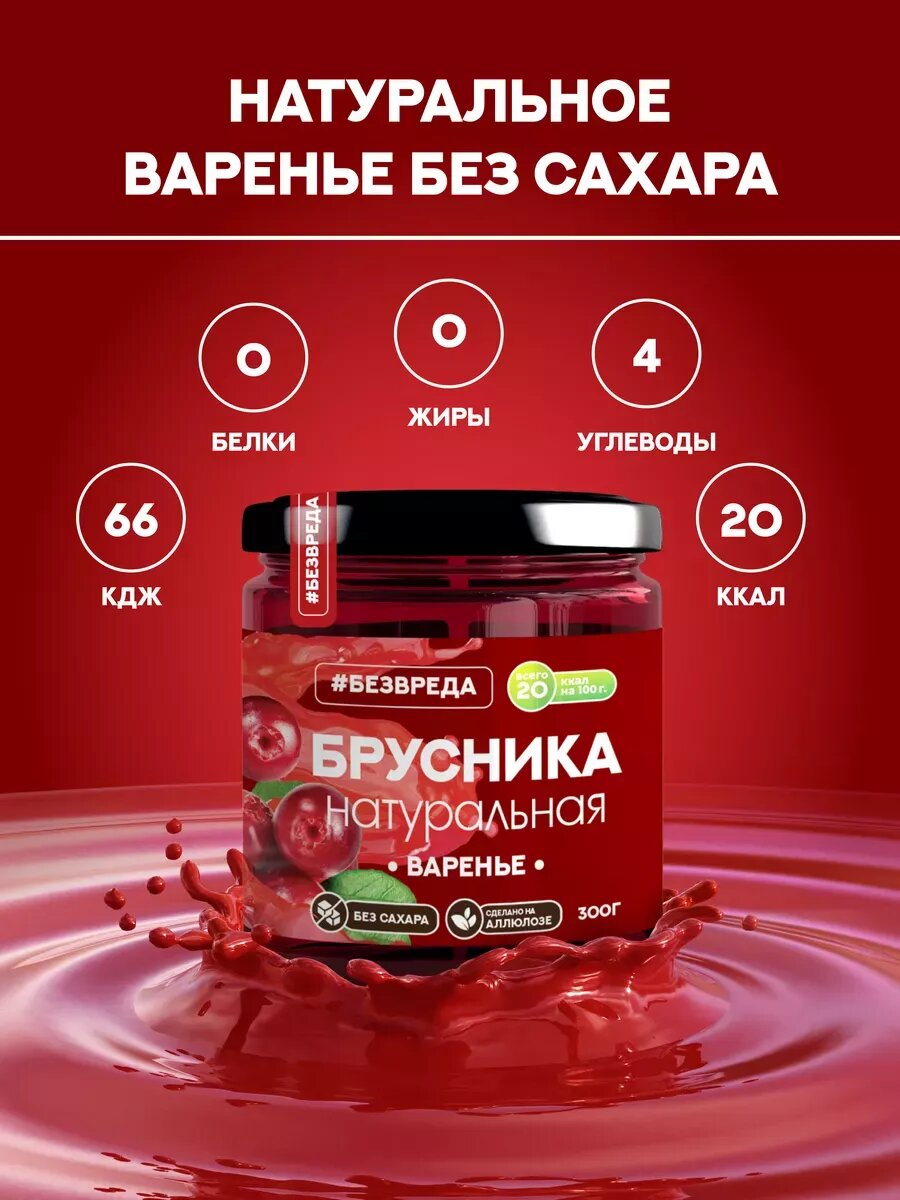 Варенье из брусники без сахара 300 гр. "безвреда" / Брусничное варенье / Варенье без сахара