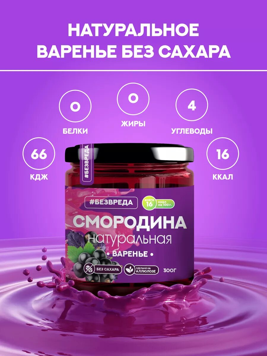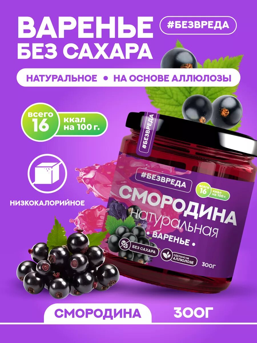 Варенье из черной смородины без сахара 300 гр. "безвреда" / Варенье черная смородина / Варенье без сахара