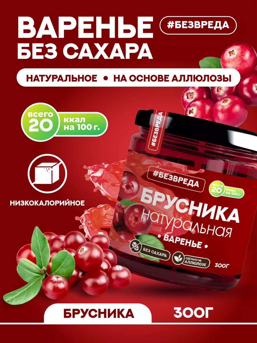 Варенье из брусники без сахара 300 гр. "безвреда" / Брусничное варенье / Варенье без сахара