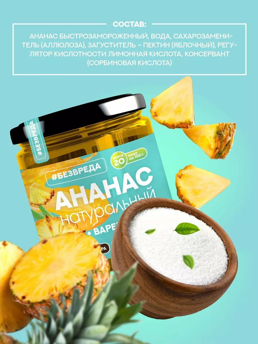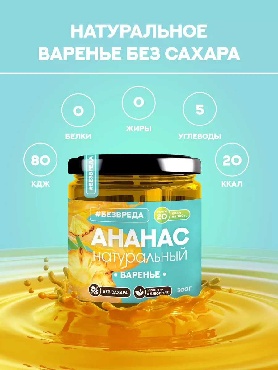 Варенье из ананасов без сахара 300 гр. "безвреда" / ананасовый джем / варенье без сахара