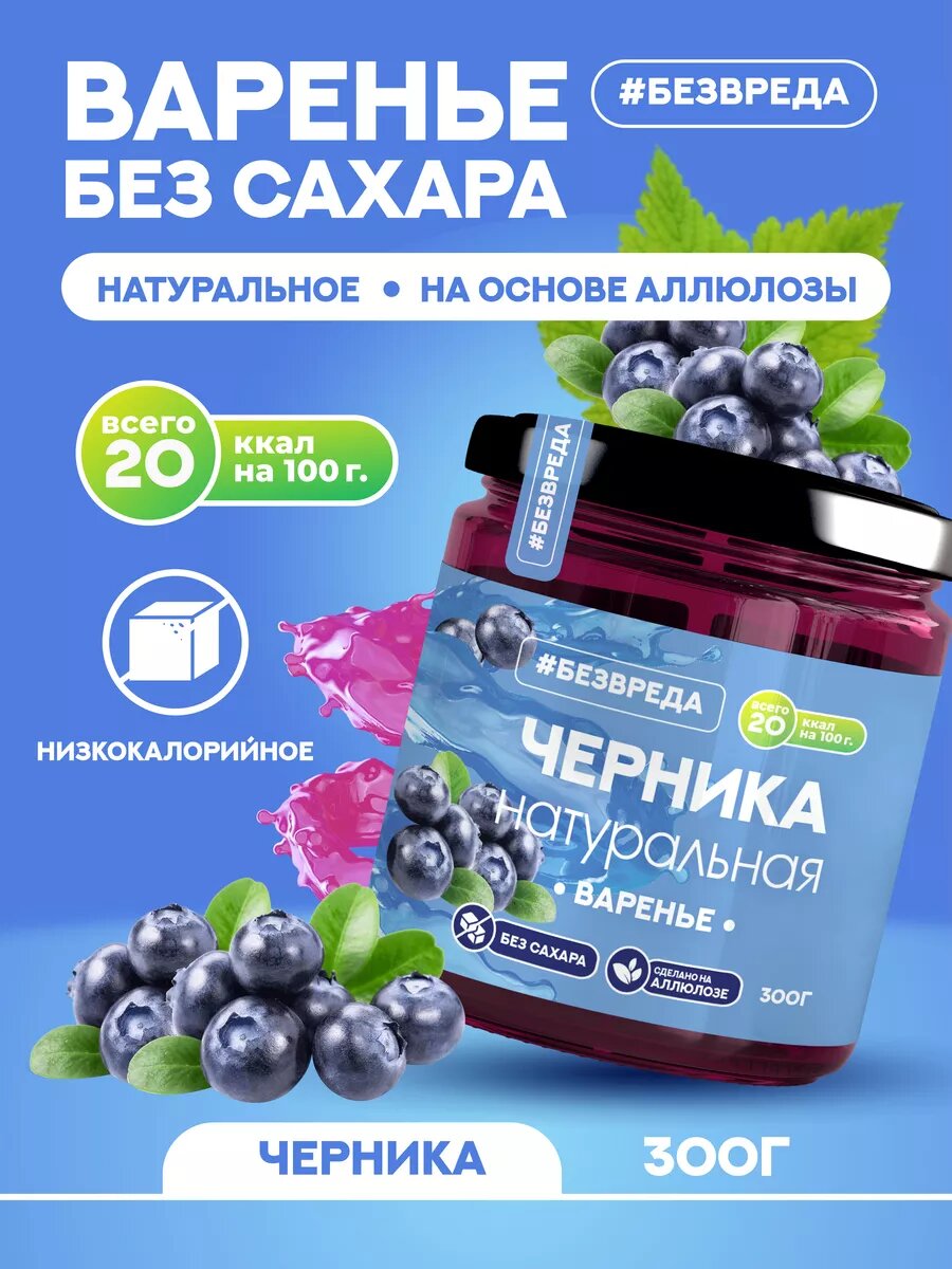 Варенье из черники без сахара 300 гр. "безвреда" / черничное варенье / варенье без сахара