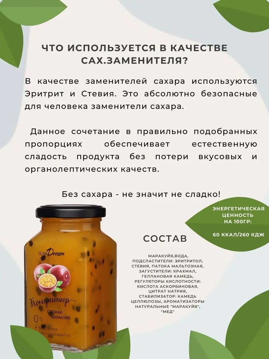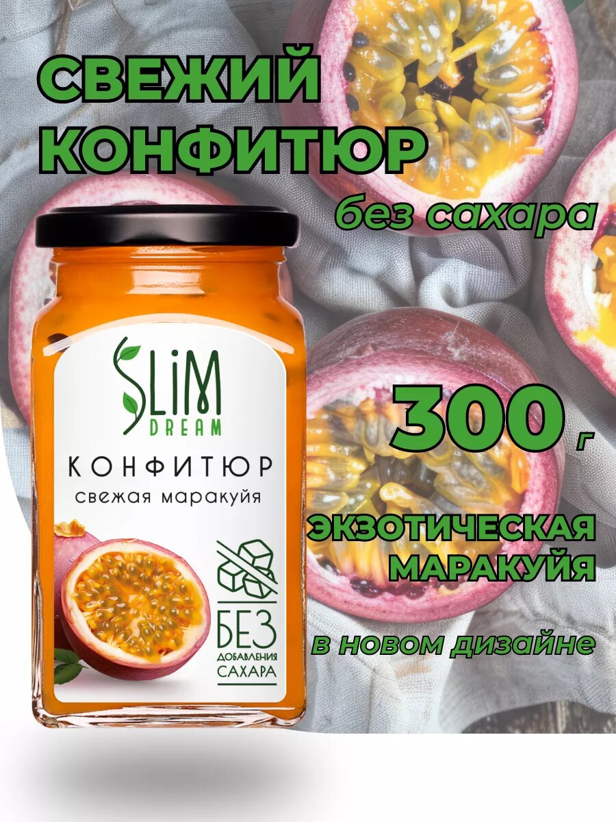 Конфитюр SLIMDREAM Свежая маракуйя, без сахара, 300г интересное: