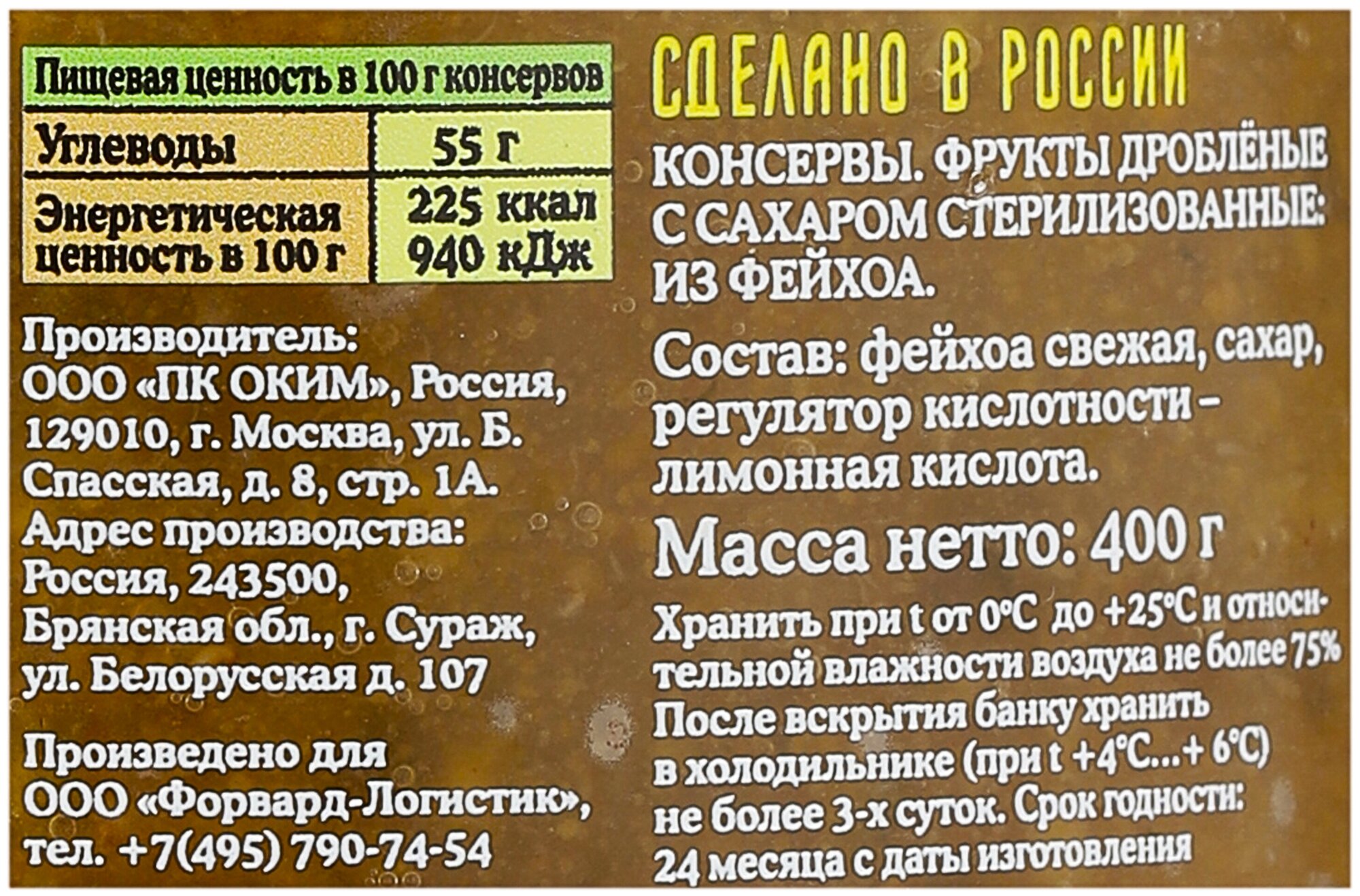 | Состав | фейхоа свежая, сахар, лимонная кислота - регулятор кислотности |