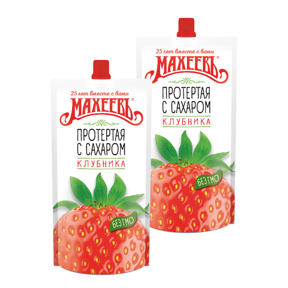 "Клубника протертая с сахаром Махеев" - 2 упаковки по 300 гр