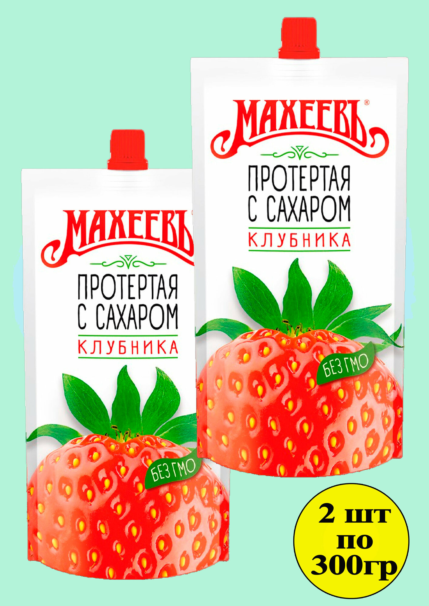 Купить Махеевъ Ягоды протертые Клубника с сахаром, 300 г, 2 шт