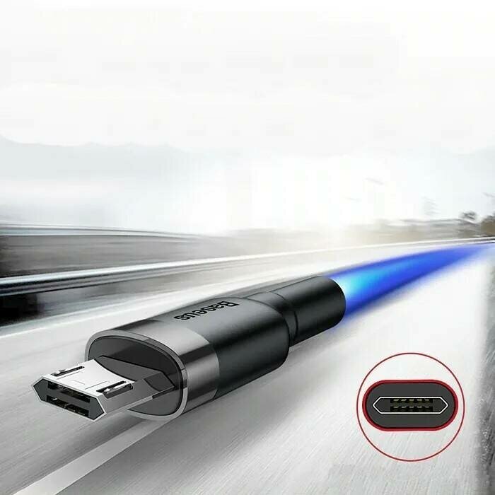 Кабель Baseus carfule USB - Micro 2.4A 0.5 м Серый + Черный CAMKLF-AG1)