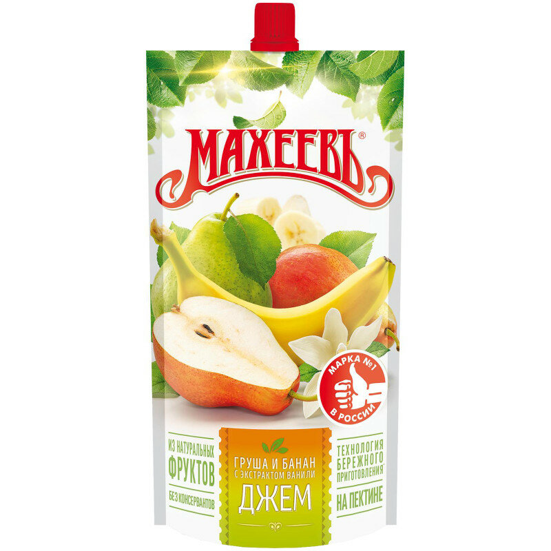 Купить Джем Махеевъ Груша и банан с экстрактом ванили дой-пак 300г