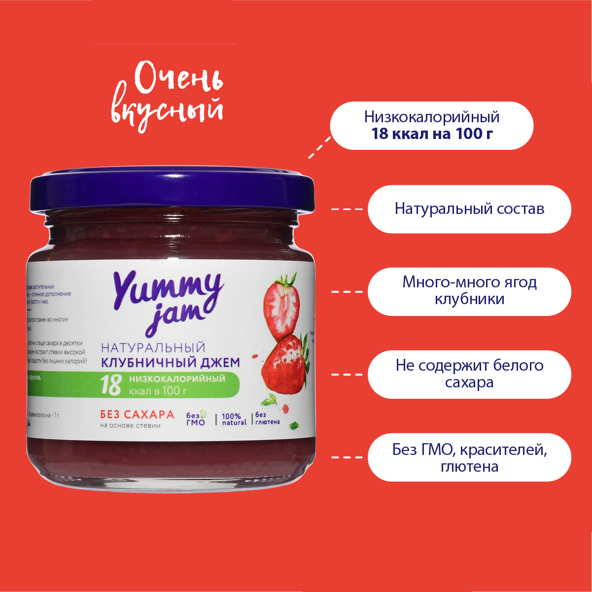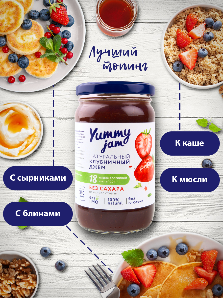 Низкокалорийный джем без сахара Yummy Jam клубничный 200 гр. интересное: