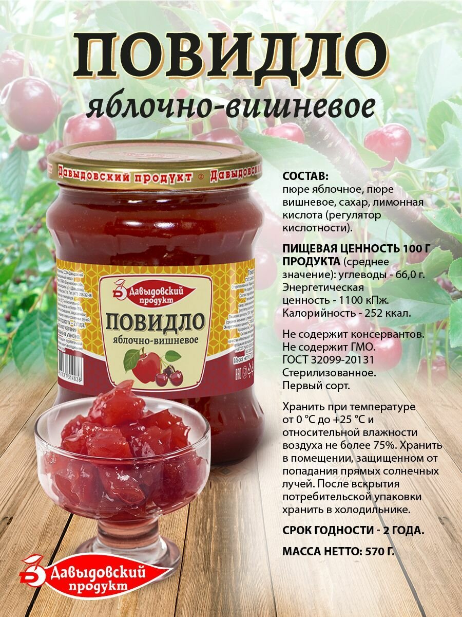 Повидло для выпечки яблочно-вишневое Давыдовский продукт - 440 гр, готовая еда ГОСТ, 2 шт интересное: