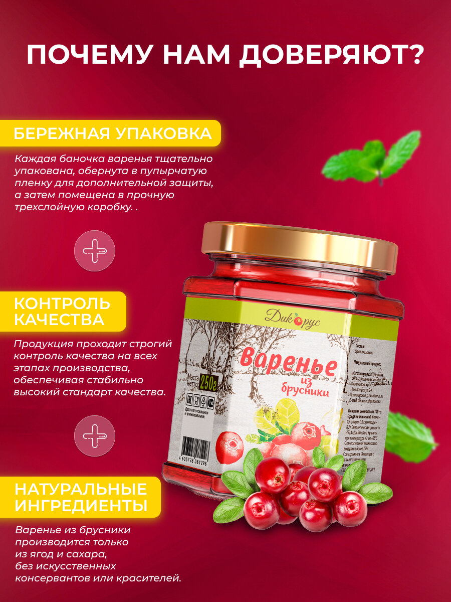 Варенье из брусники 250 гр - 200 мл интересное:
