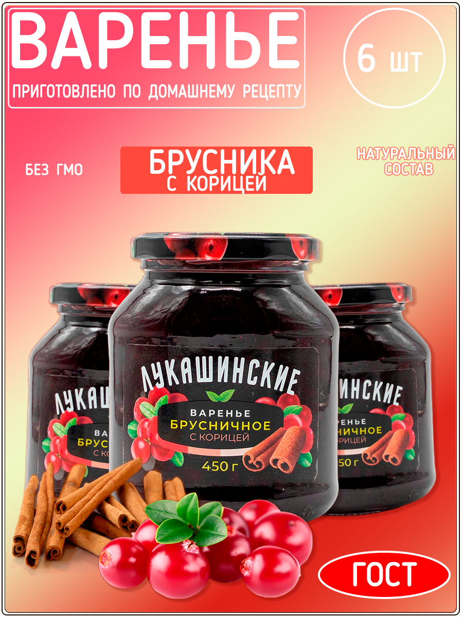 Лукашинское Варенье брусничное с корицей, 450 г, 6 шт
