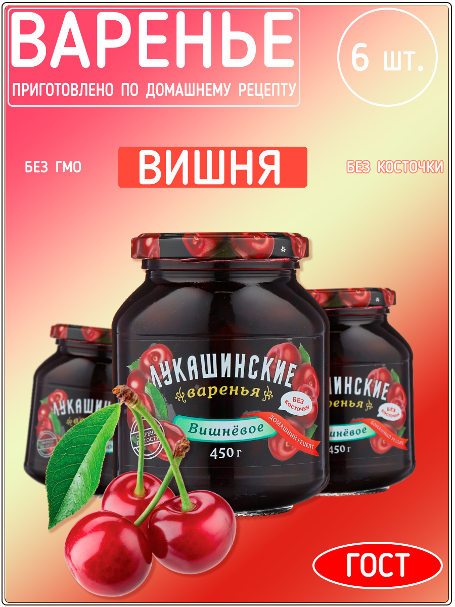 Лукашинские Варенье Вишневое без косточки, 450 г, 6 шт