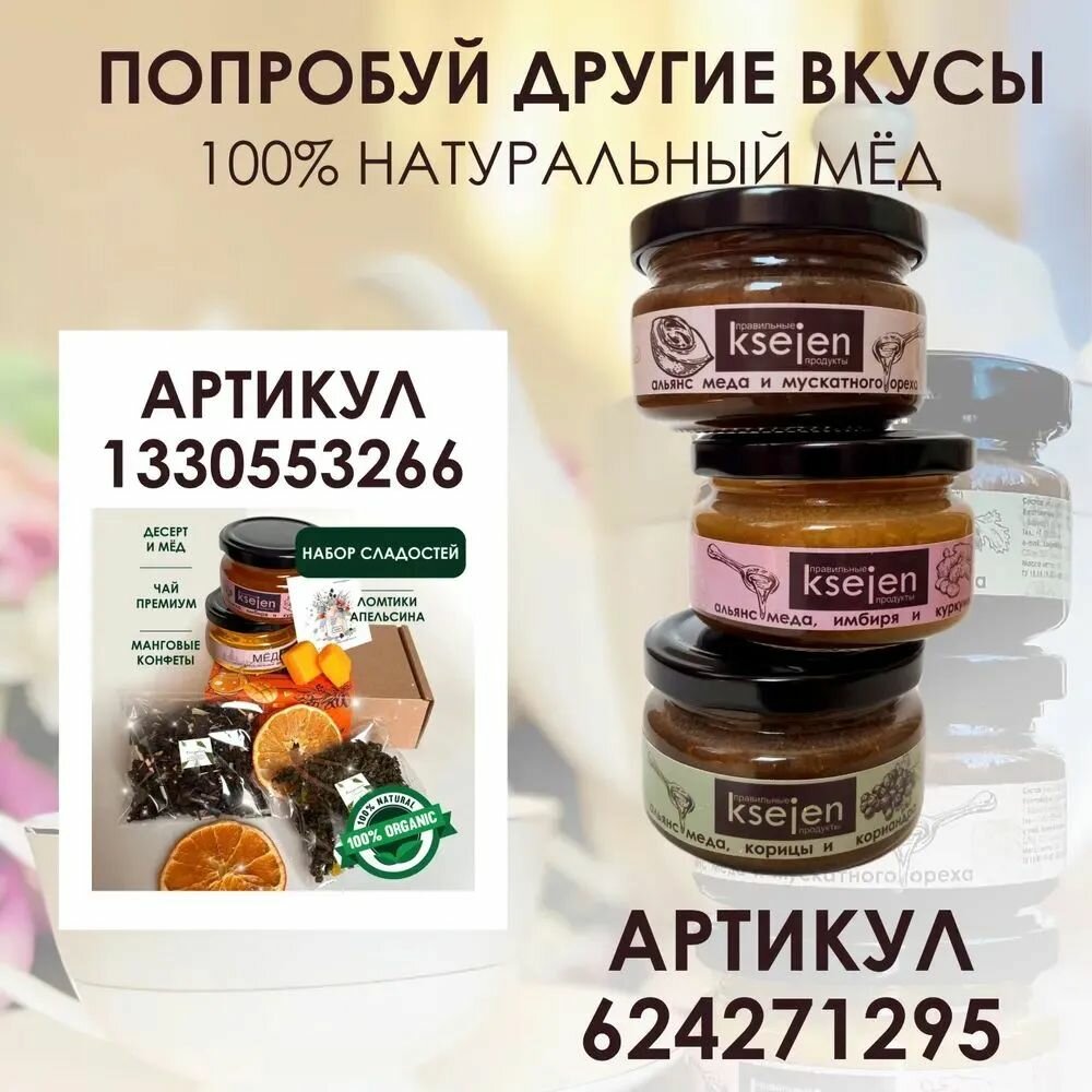 Подарочный набор меда ассорти: куркума и имбирь, мускатный орех, корица и кориандр без сахара для правильного питания