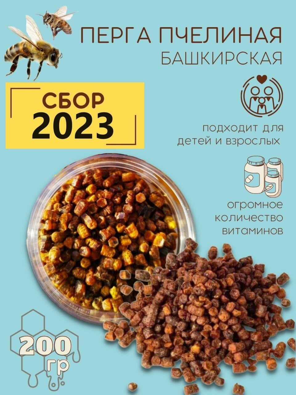 | Состав | Башкирская, натуральная пчелиная перга 2023 года. |