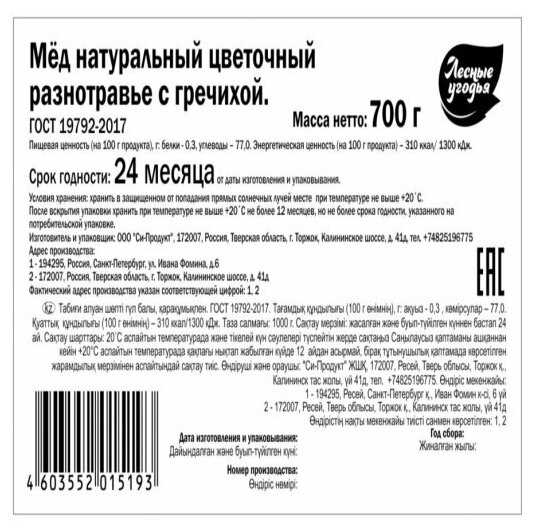 | Состав | мед натуральный цветочный разнотравье |