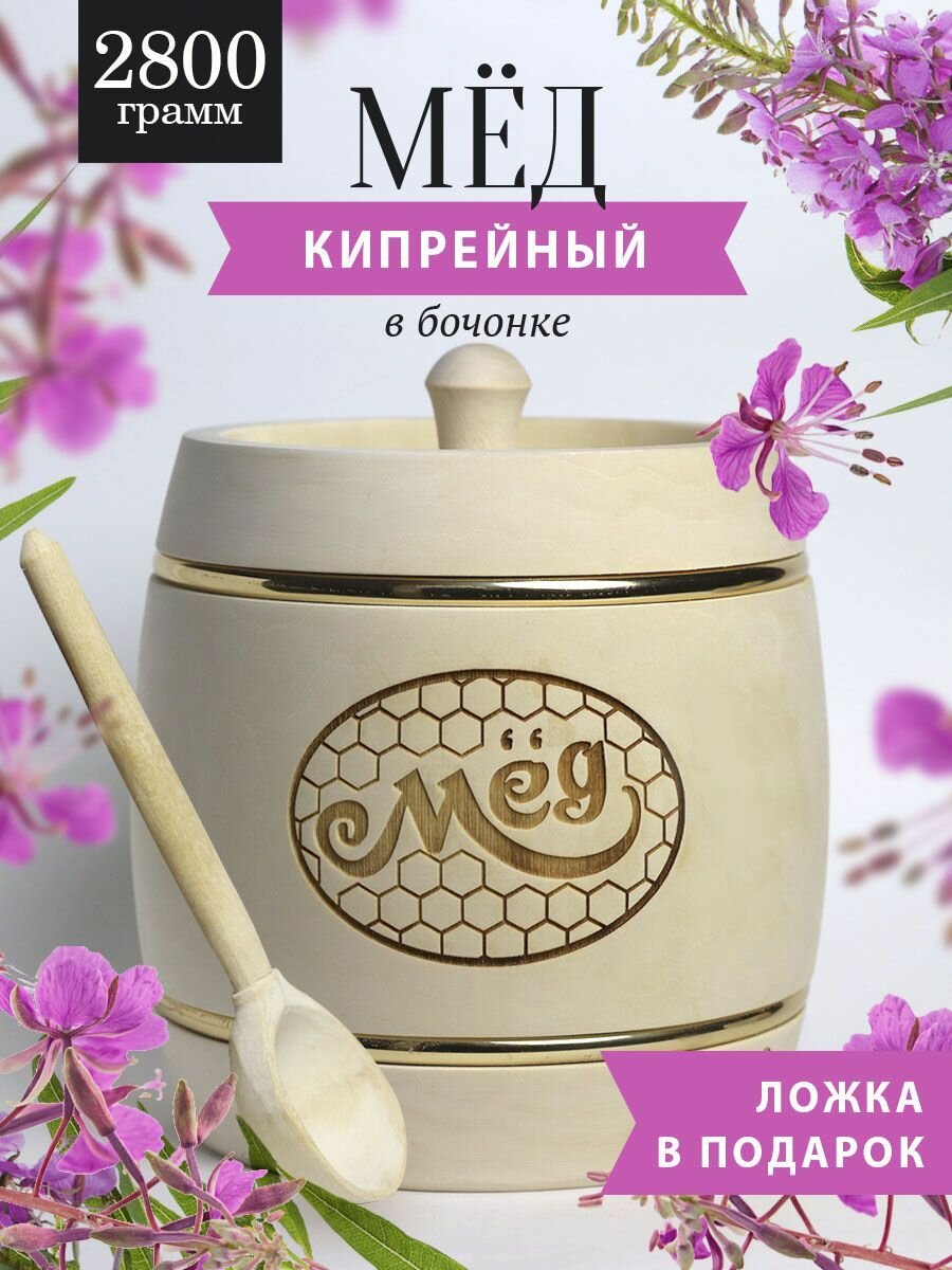 СохранитьКипрейный мед 2800 г в белом бочонке, В19 интересное: