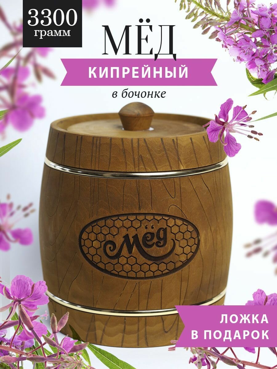Купить Кипрейный мед 3300 г в коричневом бочонке, В19