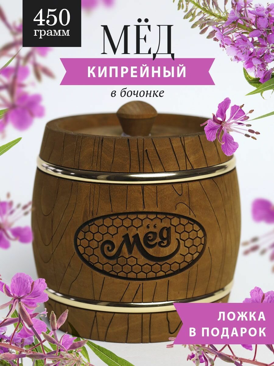 Купить Кипрейный мед 450 г в коричневом бочонке, В11