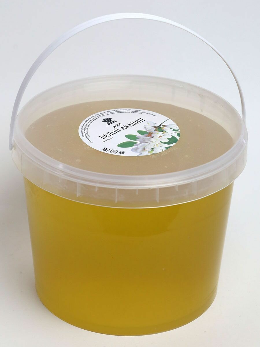 Акациевый мед 1100 г, мед белой акации, натуральный мед , сбор 2024 года, жидкий