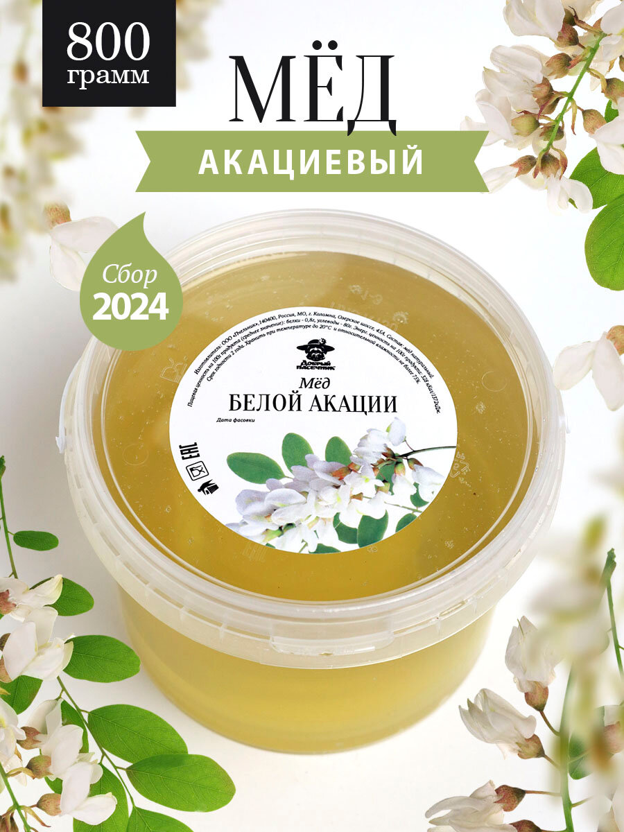 Купить Акациевый мед натуральный 800 г, мед белой акации, сбор 2024 года, свежий, жидкий