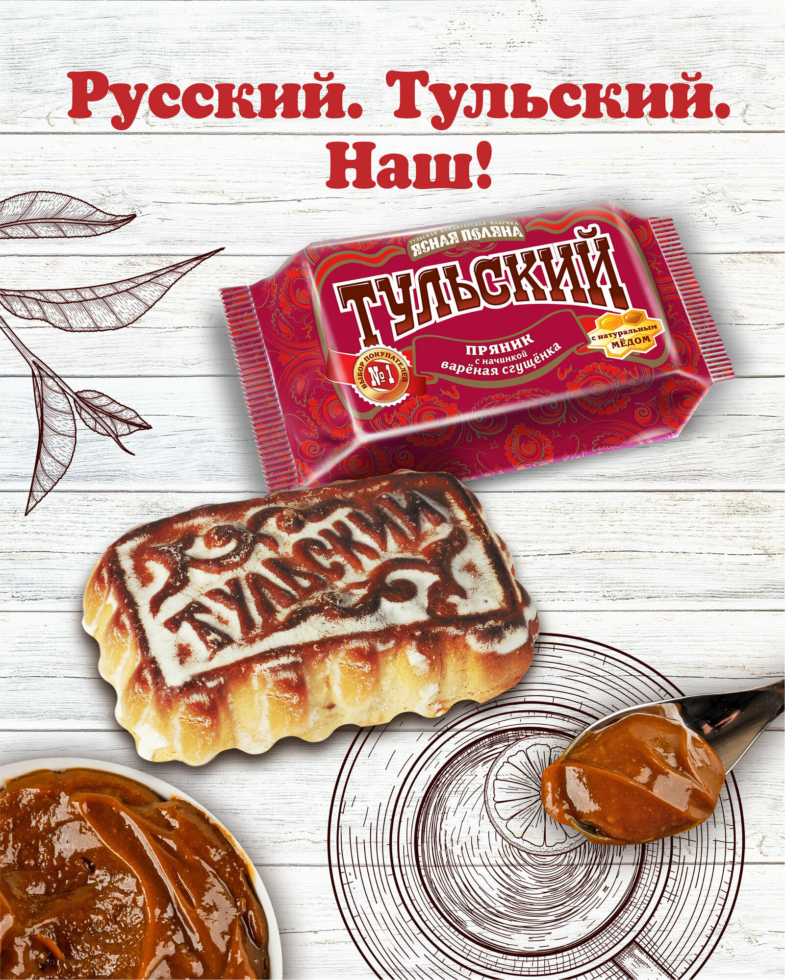 Ясная поляна Тульский пряник с начинкой вареная сгущенка, 45 г, 24 шт