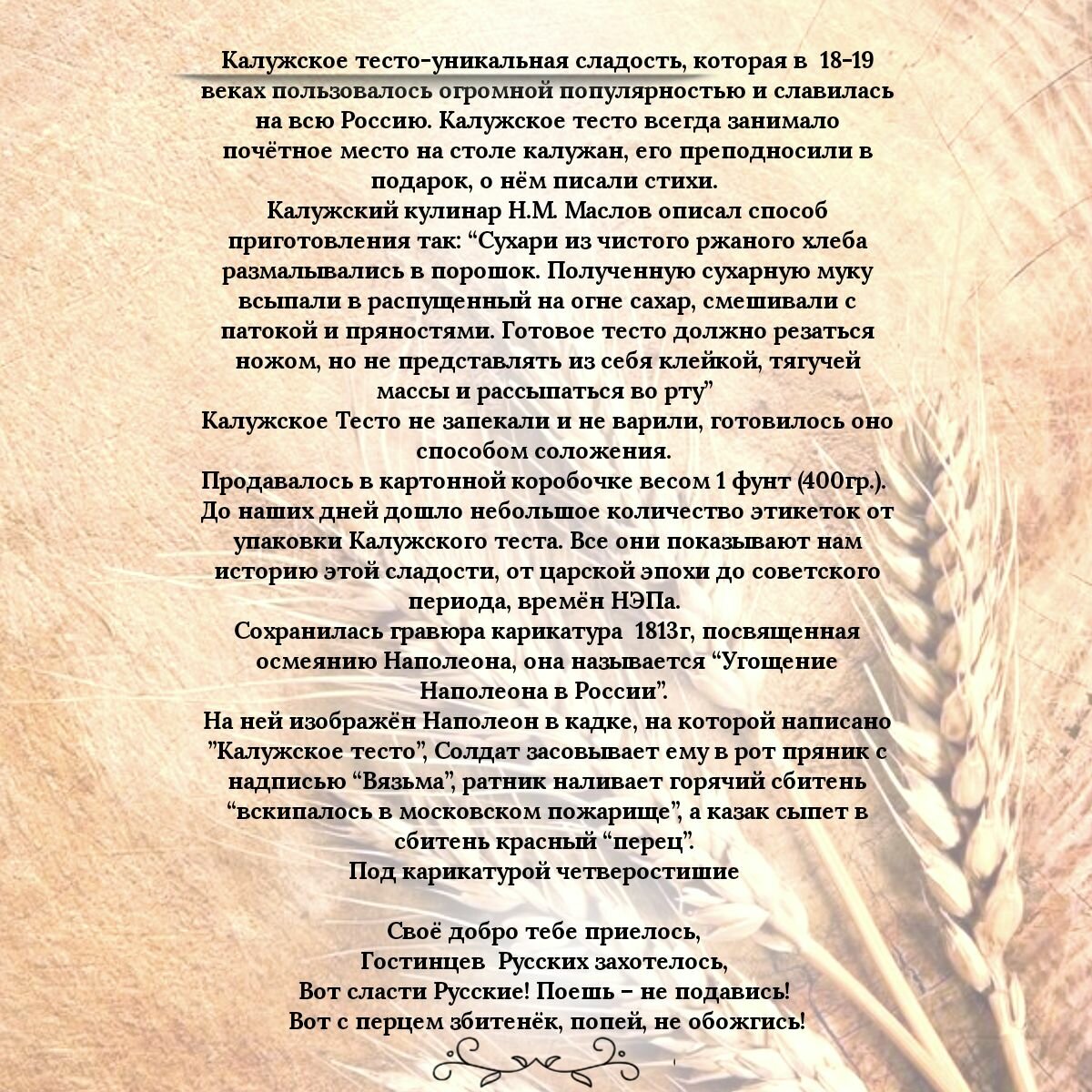 Ниже Вы можете прочитать отзывы на Лакомство "Калужское тесто", ознакомится с подробными характеристиками, посмотреть интересные обзоры и фотографии на Лакомство "Калужское тесто".