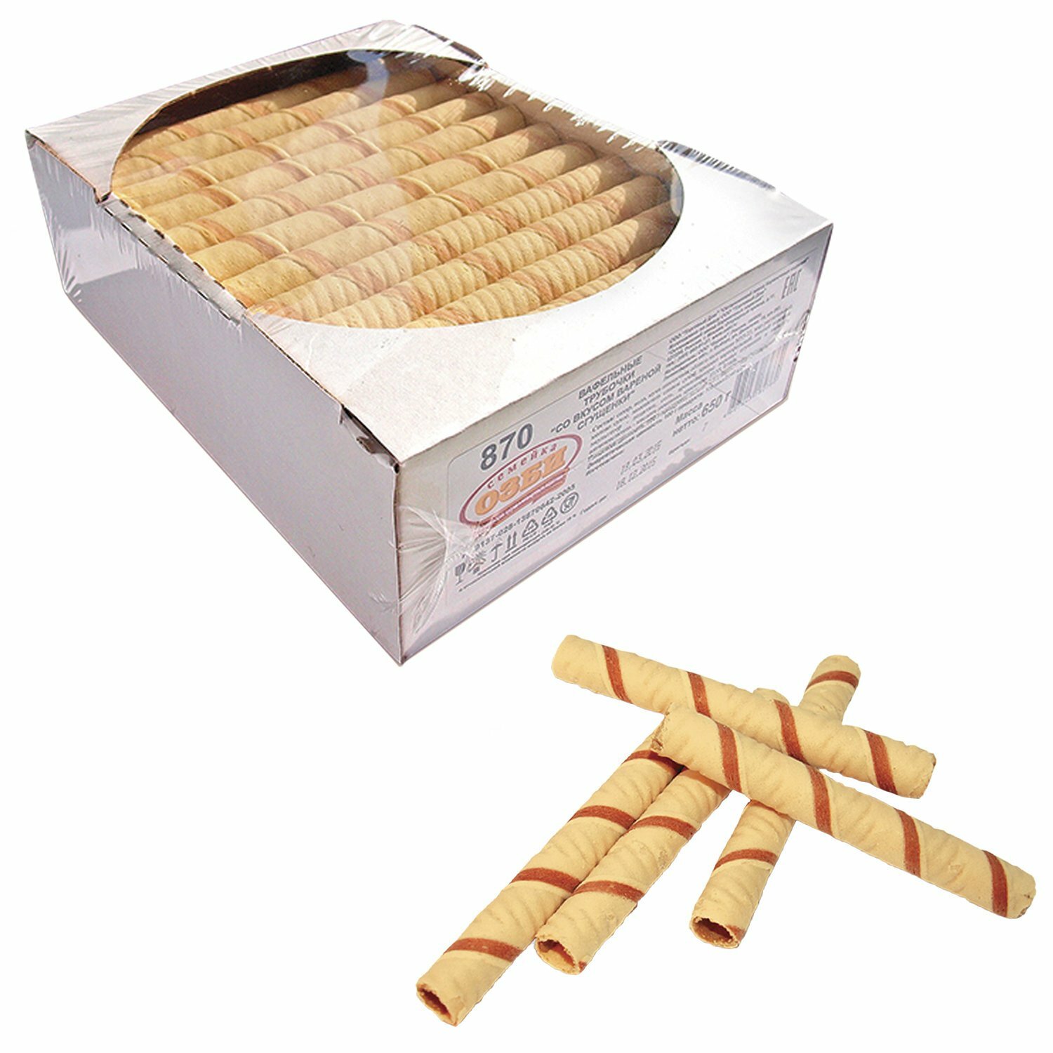 Вафельные трубочки семейка озби, со вкусом вареной сгущенки, 650 г, гофрокороб, 870