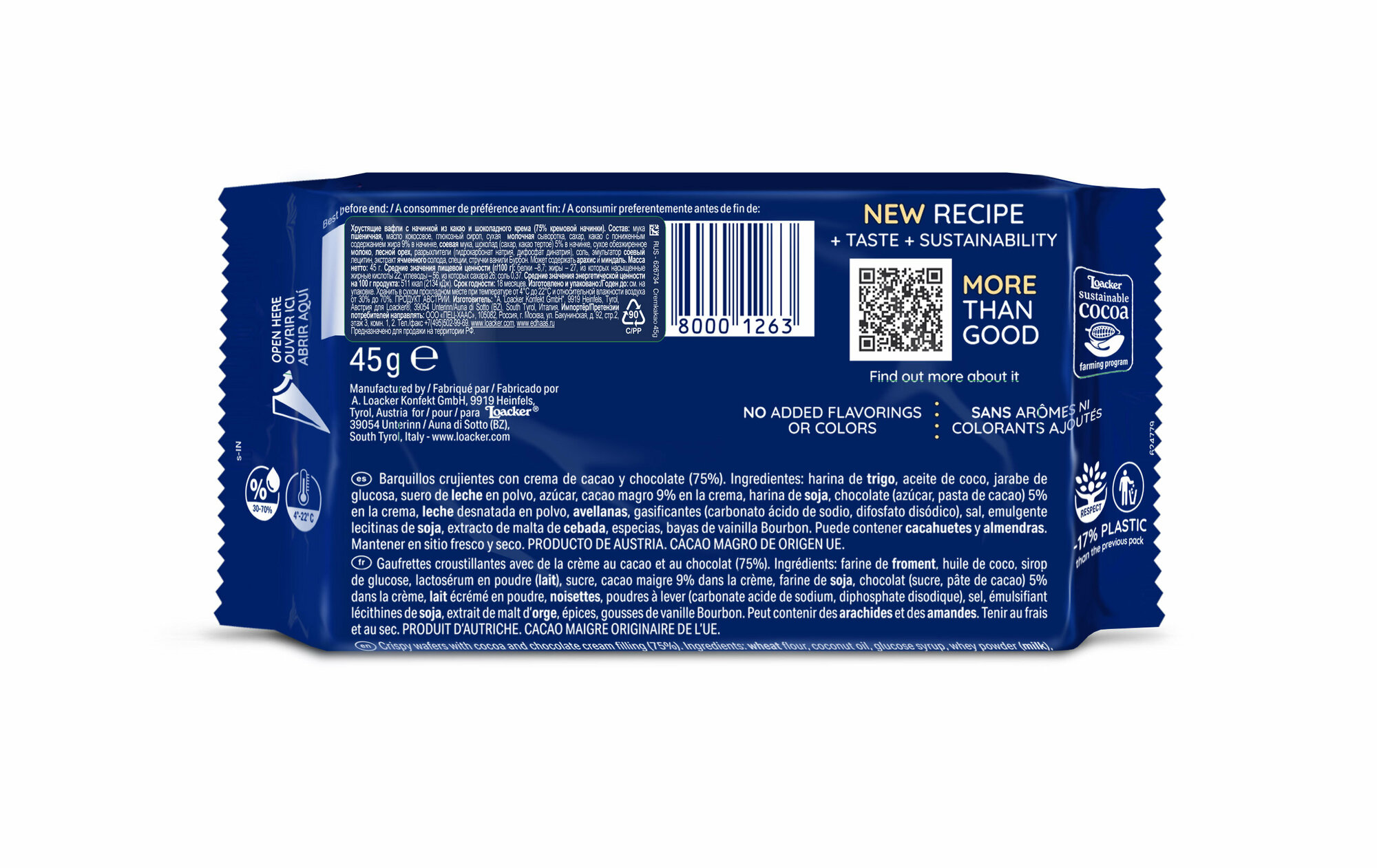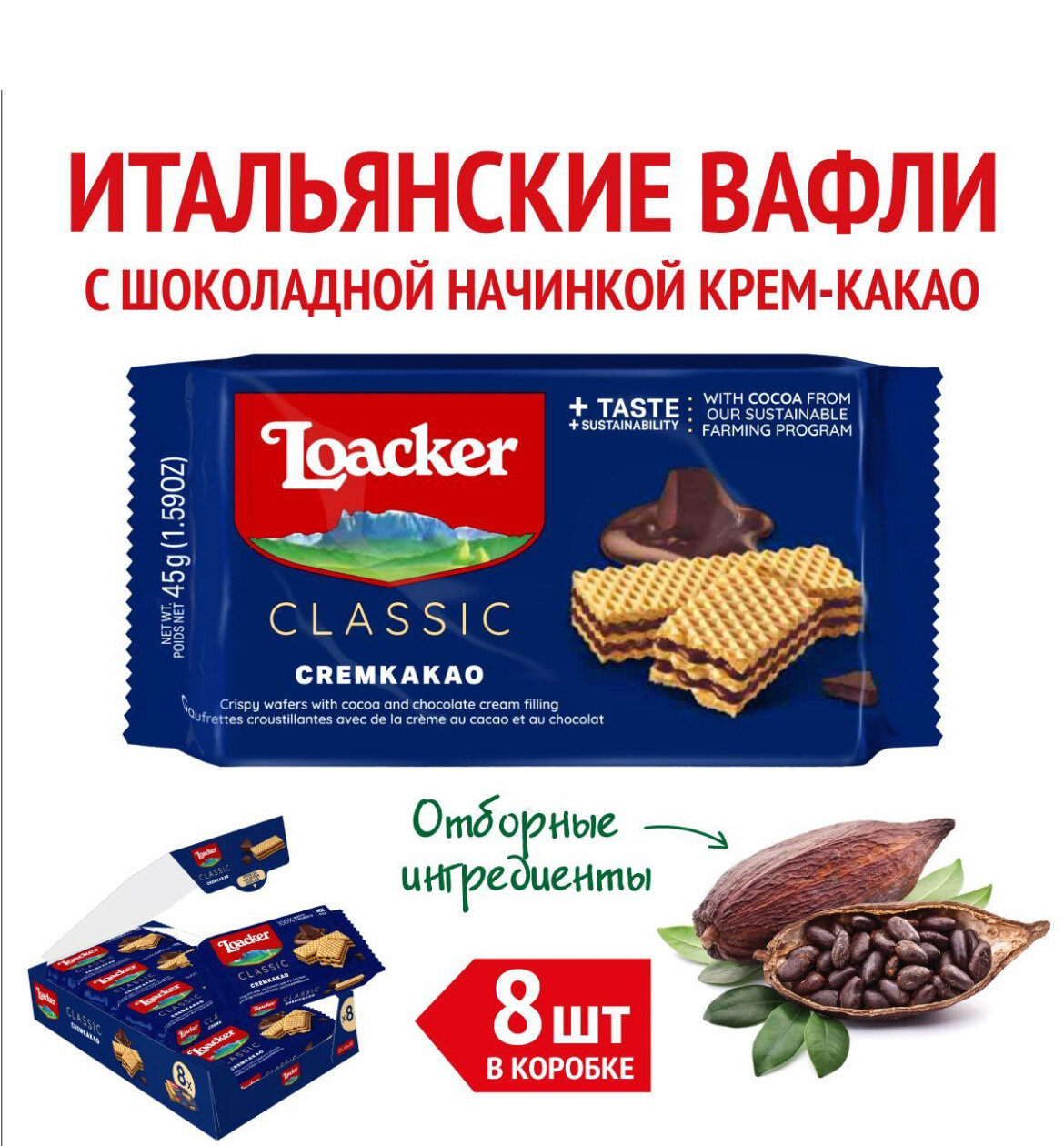 Вафли Loacker Classic Cremkakao (сливочная какао-начинка), упаковка 8 шт по 45 г интересное:
