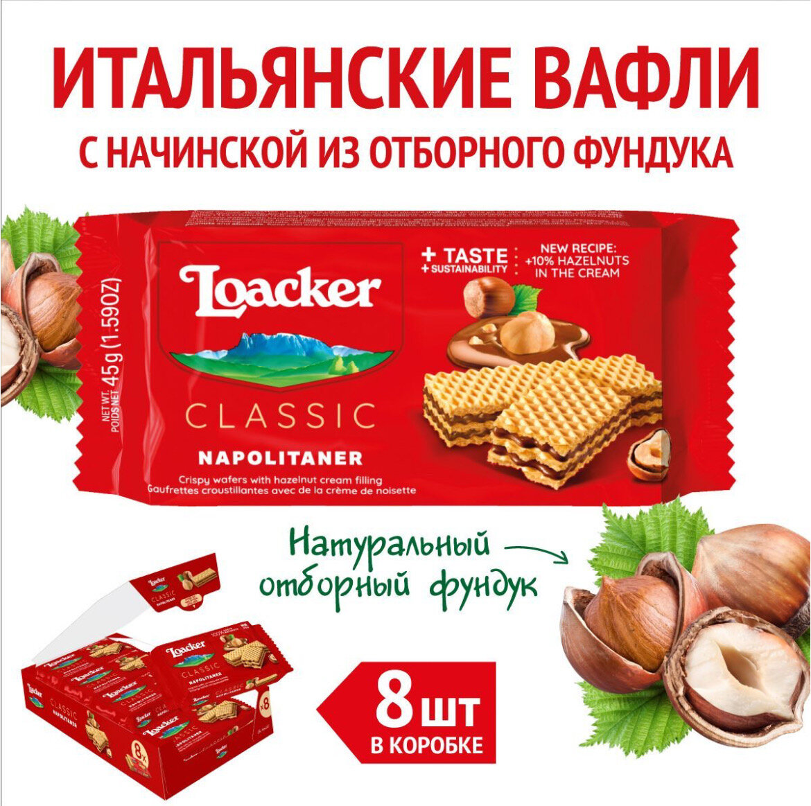 Купить Вафли Loacker Classic Napolitaner (ореховая начинка), 8шт по 45 г