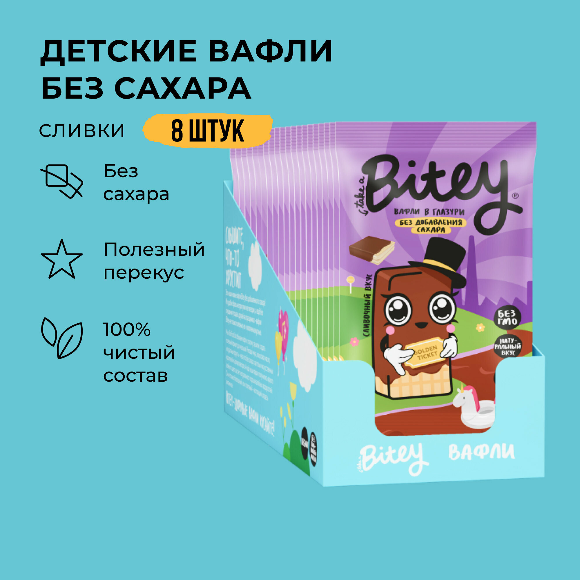 Вафли без сахара, Take a Bitey / Bite, Сливки, 8 шт по 35 гр интересное: