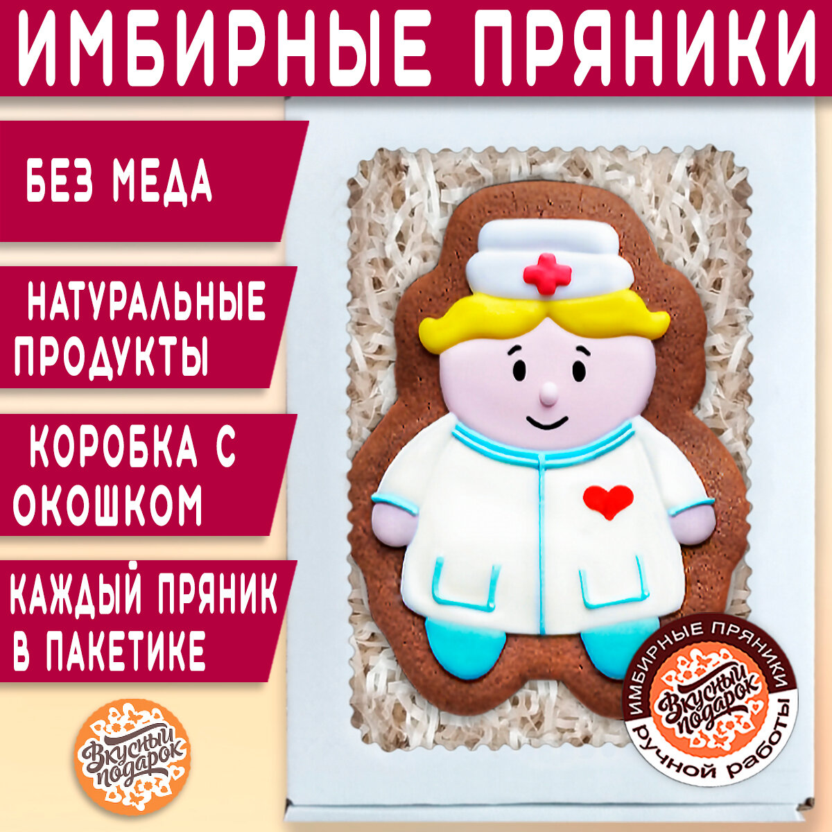 Купить Подарочный набор имбирных пряников в подарок врачу женщине мужчине, хирургу неврологу педиатру, медсестре на День Медика или в благодарность 18х12 см