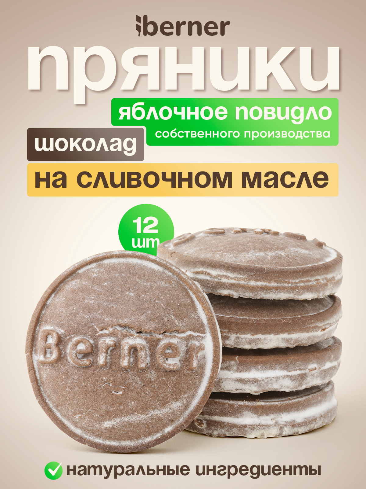 Купить Пряники шоколадные с начинкой из яблочного повидла и глазурью, 12 шт