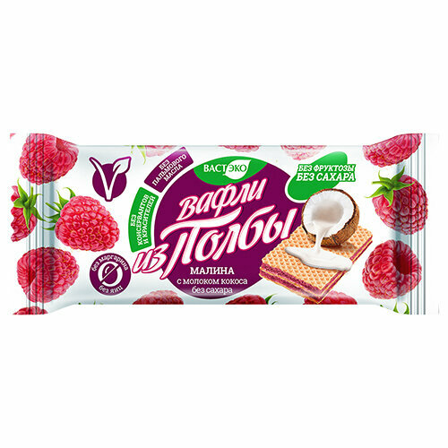 Купить Вастэко, Вафли из полбы Малина с молоком кокоса, без сахара 25 г