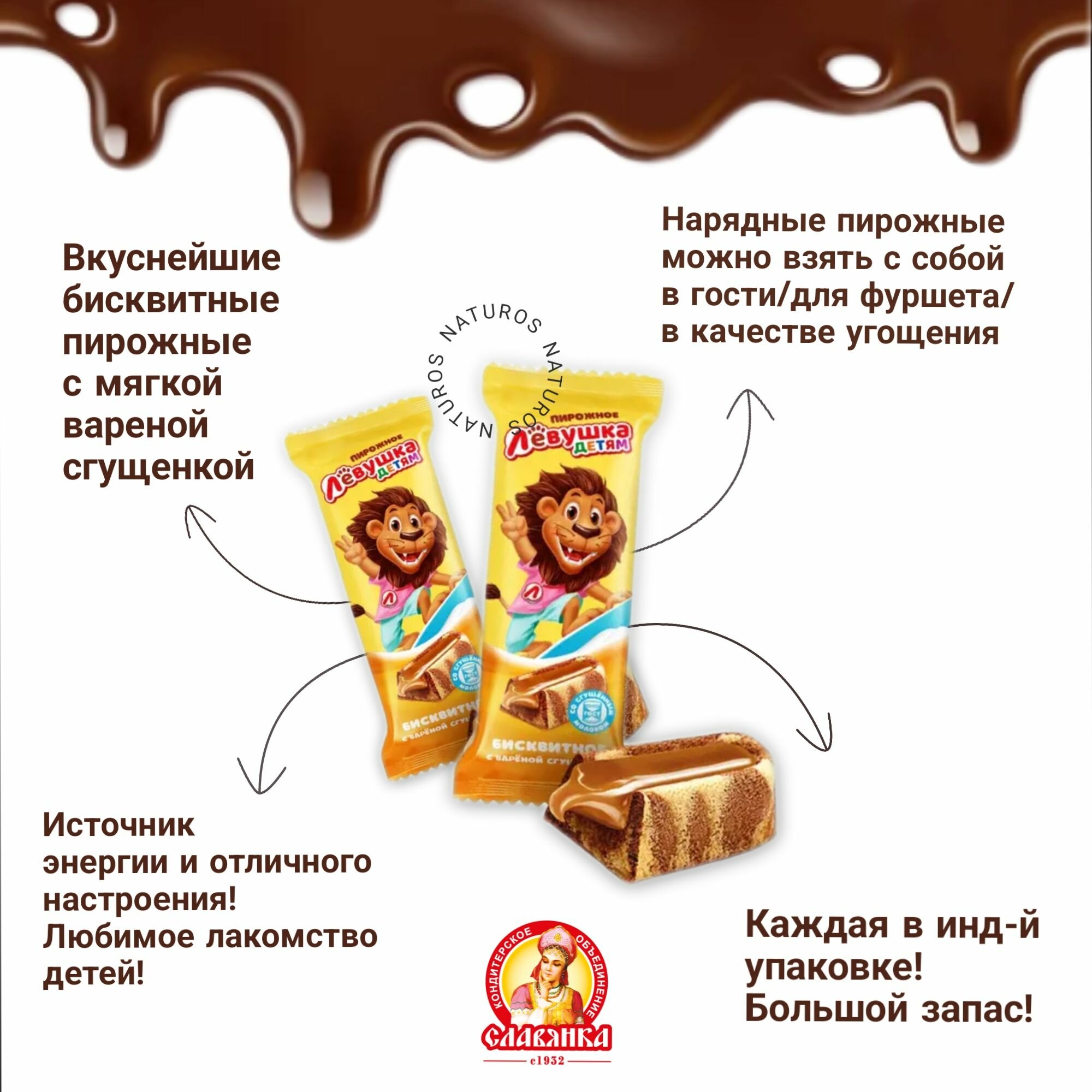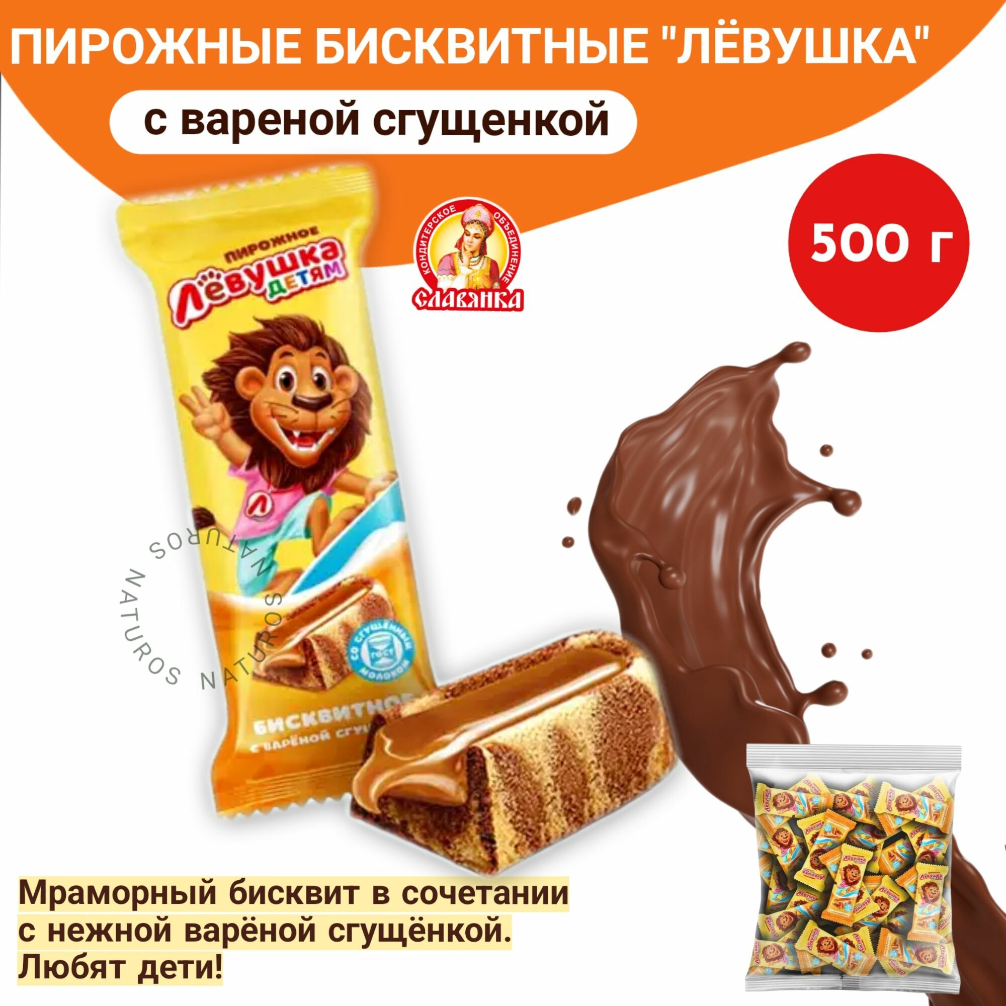 Пирожное бисквитное "Лёвушка детям" с вареной сгущенкой 500гр интересное: