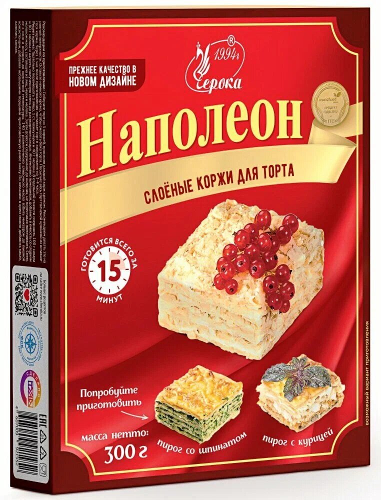 Ниже Вы можете прочитать отзывы на Коржи для торта Черока слоеные Наполеон, 300 г., ознакомится с подробными характеристиками, посмотреть интересные обзоры и фотографии на Коржи для торта Черока слоеные Наполеон, 300 г..