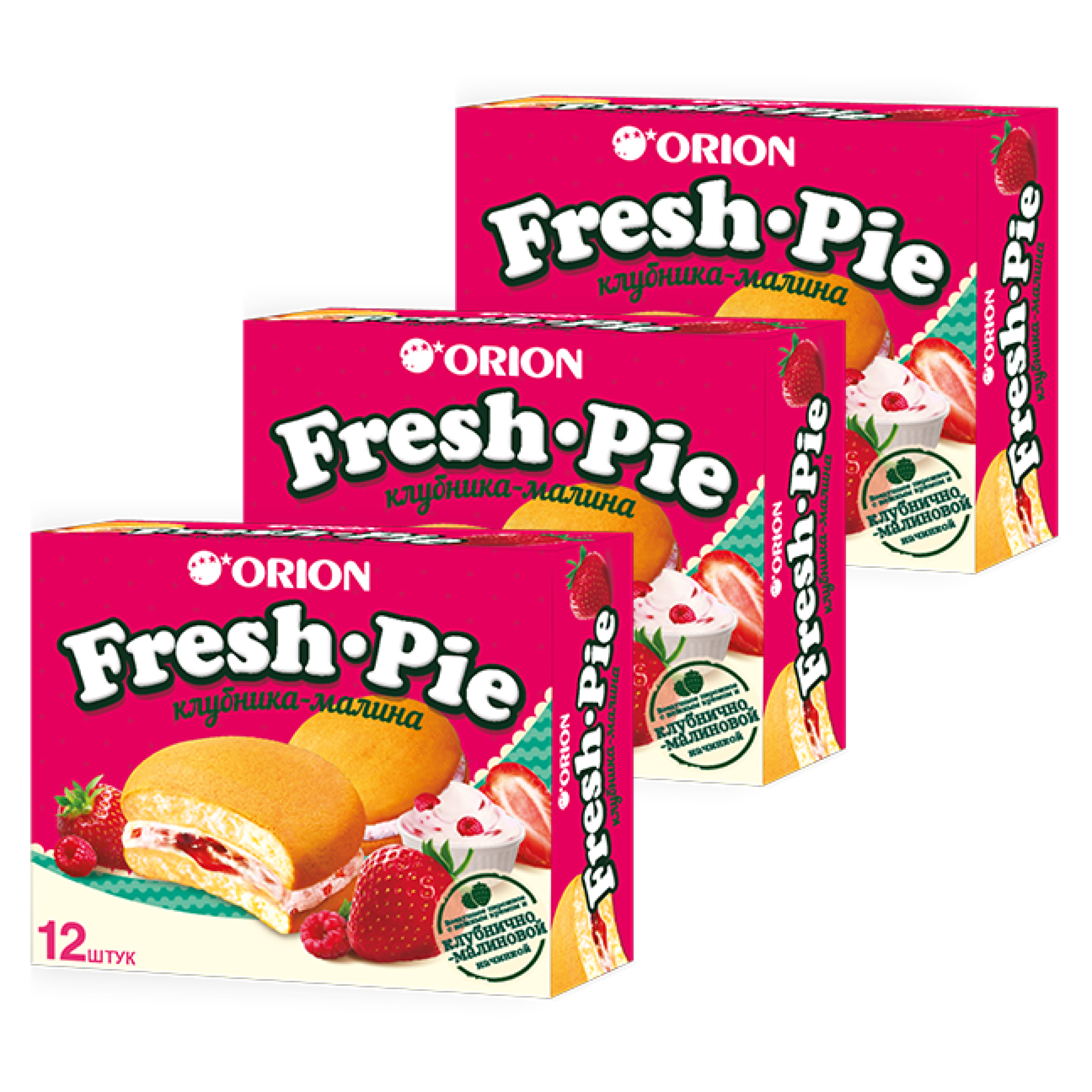 Купить Печенье Orion Fresh Pie, клубника и малина, 3 шт по 300 г