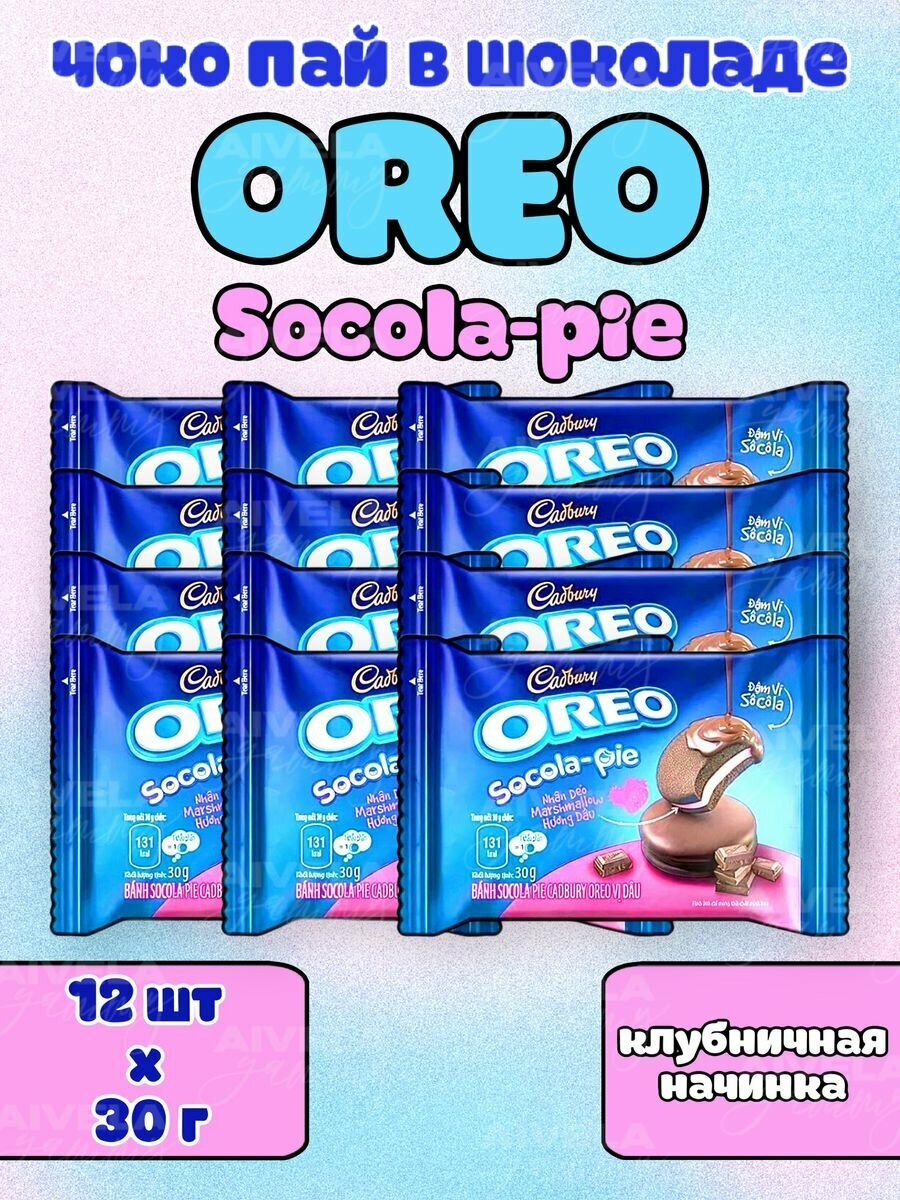 Орео бисквитные пирожные Oreo Socola Pie клубника/Чоко пай бисквит 12 шт по 30г интересное: