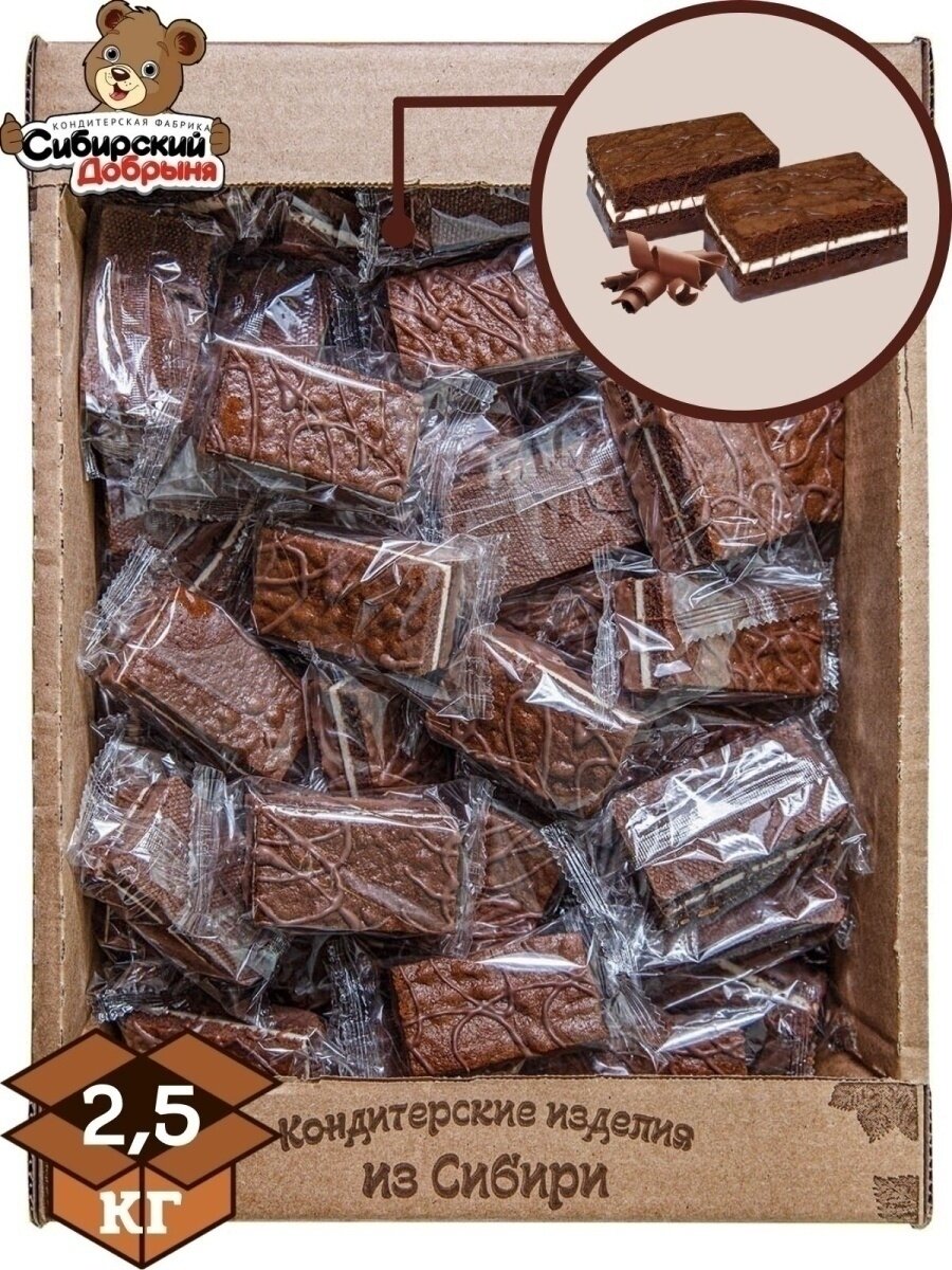 Пирожные бисквитные королевское наслаждение прослоенные Суфле и начинкой со вкусом шоколада, 2,5 кг , мишка в малиннике , Сибирский добрыня интересное: