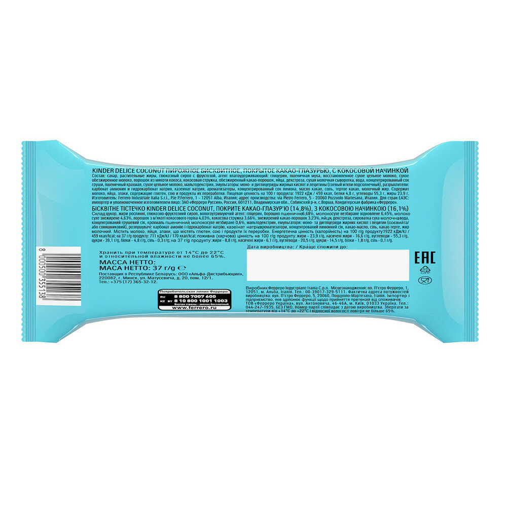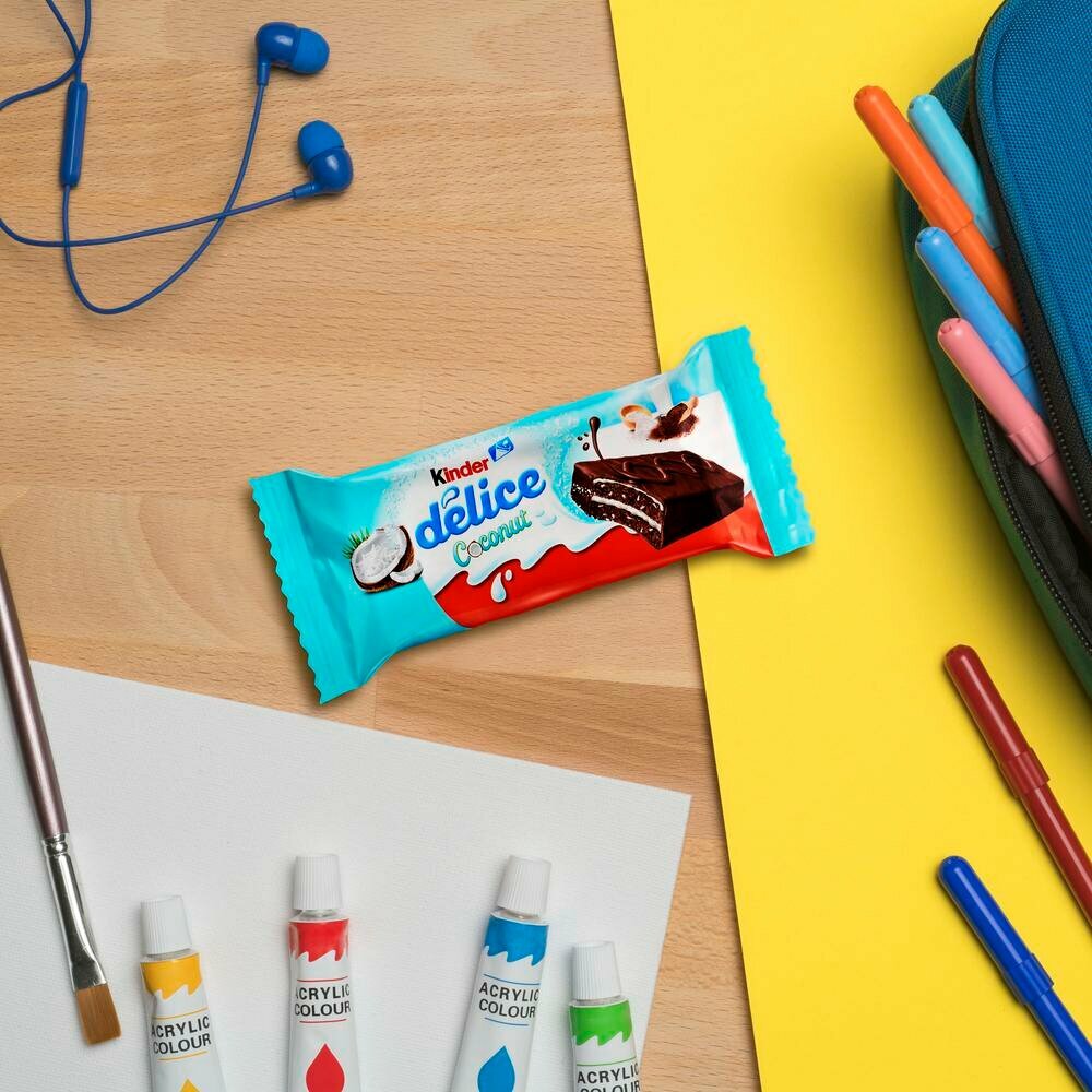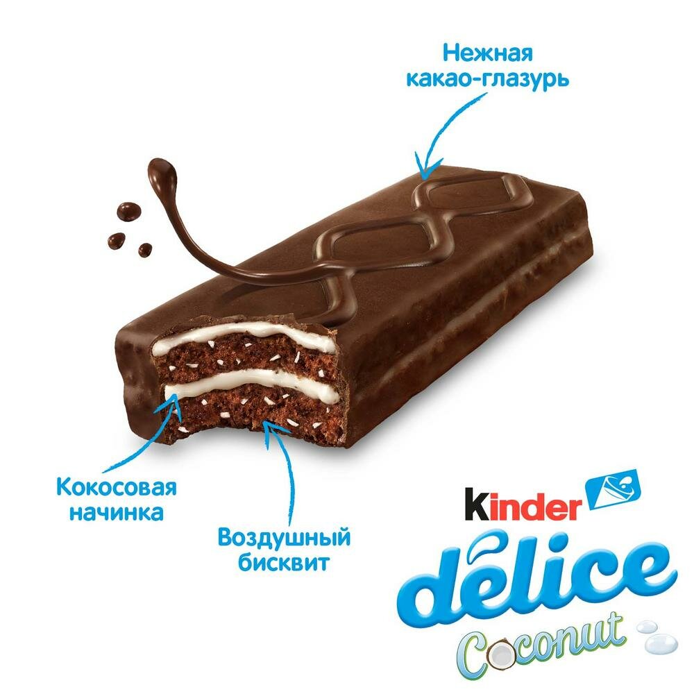 Пирожное бисквитное Kinder Delice покрытое какао-глазурью с кокосовой начинкой 20 шт по 37 г интересное: