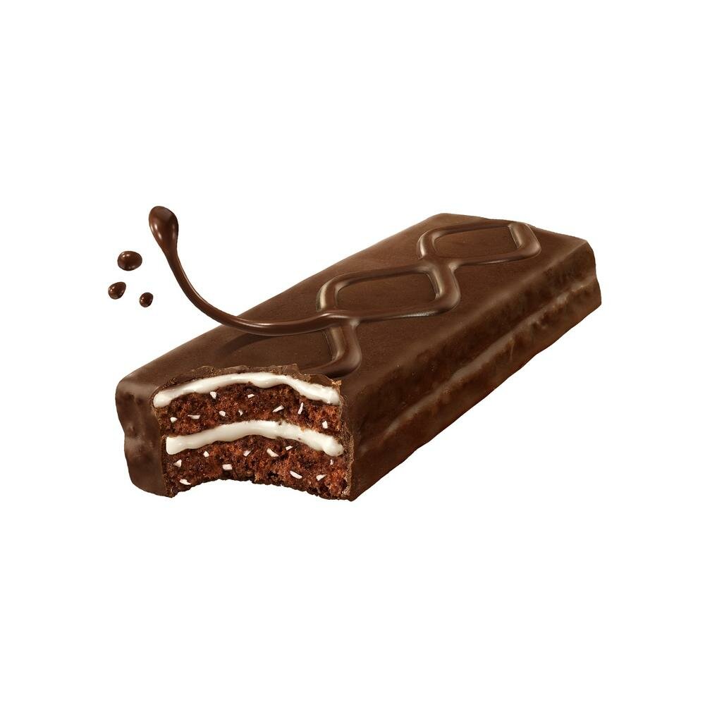 | Состав | сахар, растительные жиры, глюкозный сироп с фруктозой, агент влагоудерживающий: глицерин, пшеничная мука, восстановленное сухое цельное молоко, сухое обезжиренное молоко, порошок из мякоти кокоса, кокосовая стружка, обезжиренный какао-порошок, яйца, декстроза, сухая молочная сыворотка, вода, концентрированный сок груши, пшеничный крахмал, сухое цельное молоко, мальтодекстрин, эмульгаторы: моно- и диглицериды жирных кислот и лецитины (соевый и/или подсолнечный), разрыхлители: карбонат аммония и гидрокарбонат натрия, казеинат натрия, ароматизаторы, концентрированный сок лимона, масло какао, соль, тертое какао, молочный жир. Содержит молоко, яйца, злаки, содержащие глютен, сою и продукты их переработки. |