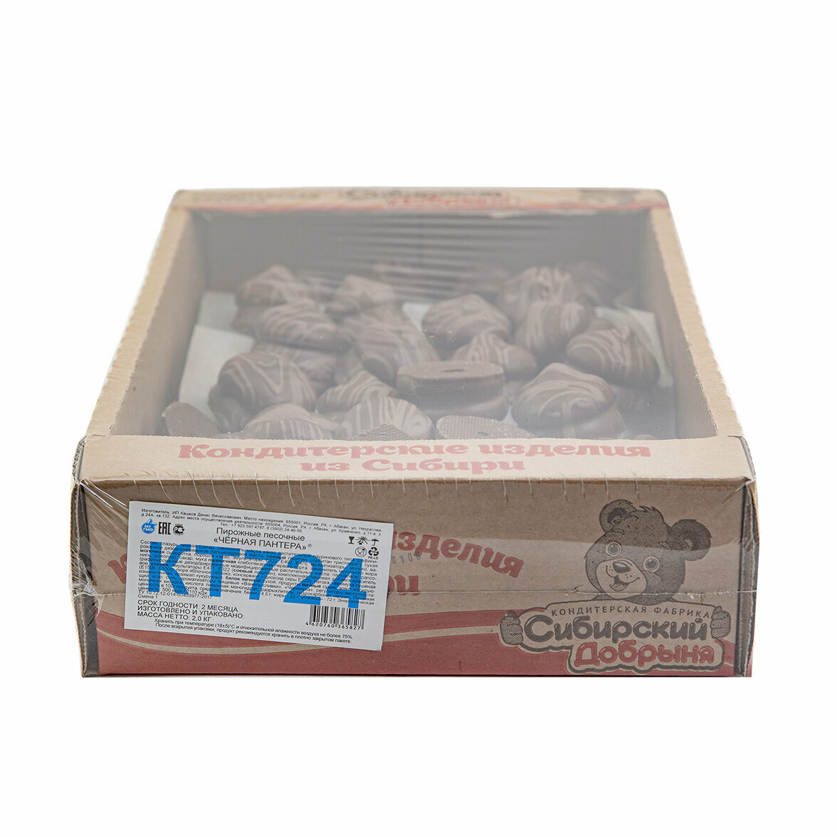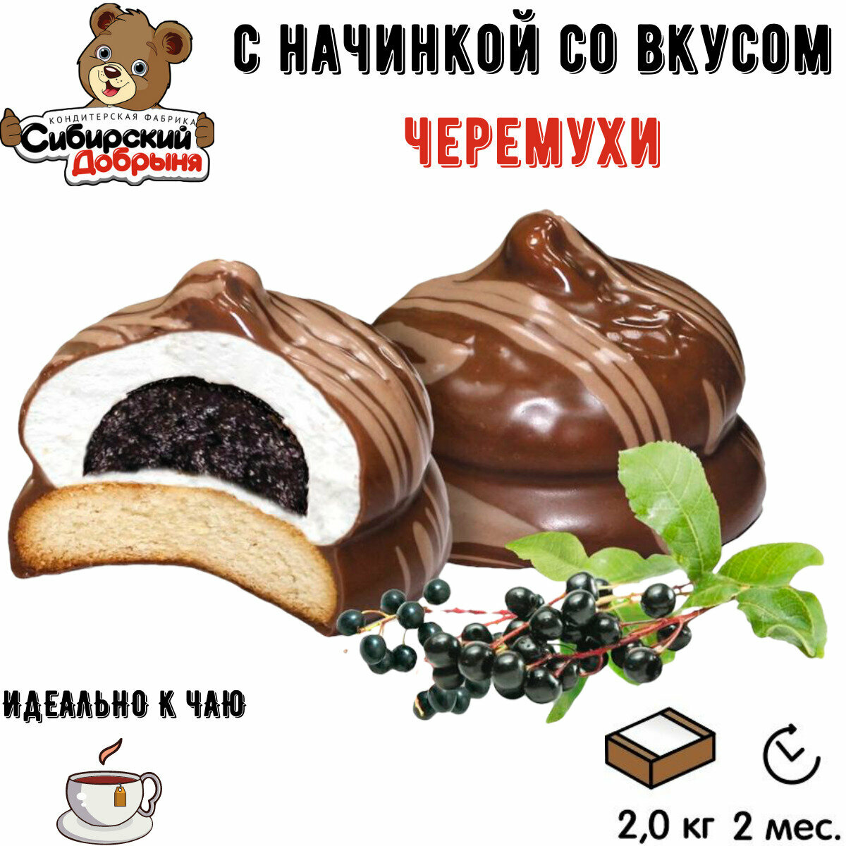 Пирожные песочные черная пантера с отделкой суфле и черемуховой начинкой, 2 кг , мишка в малиннике , Сибирский добрыня интересное: