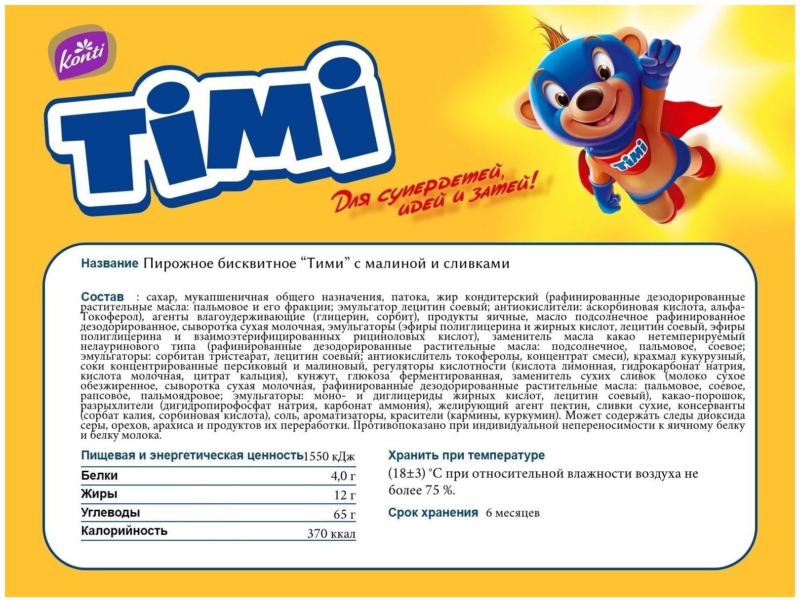 Пирожное бисквитное TIMI с малиной и сливками, 330 г интересное: